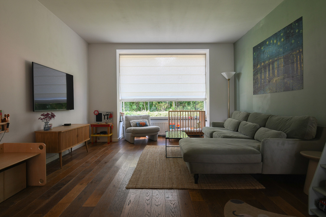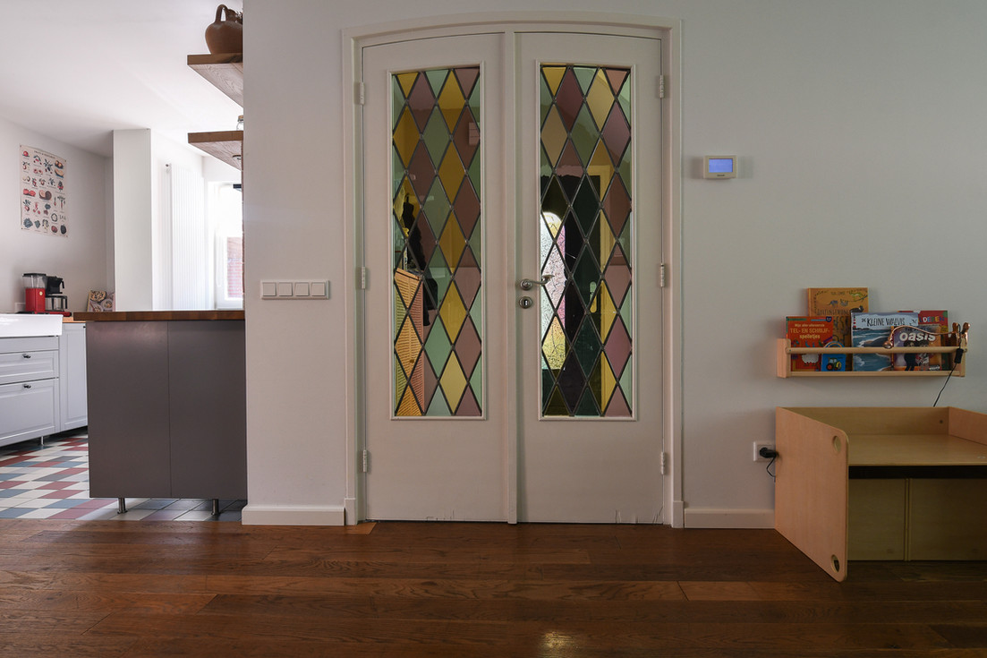 Bij binnenkomst valt direct de sfeer op, mede door de originele details die zorgvuldig behouden zijn gebleven. De woning beschikt over een royale woonkamer met eigentijdse afwerking en veel lichtinval. De moderne keuken sluit hier naadloos op aan en vormt het hart van de woning.